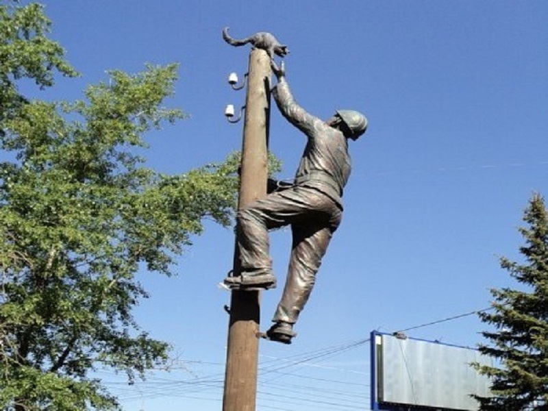 В «серию» необычных памятников, установленных в г. Новгороде, входит и памятник девушке, сидящей на парапете пешеходного моста. Есть две версии происхождения этого памятника. В начале известный новгородский скульптор Вадим Боровых, чьи скульптурные композиции «разбросаны» практически по всему